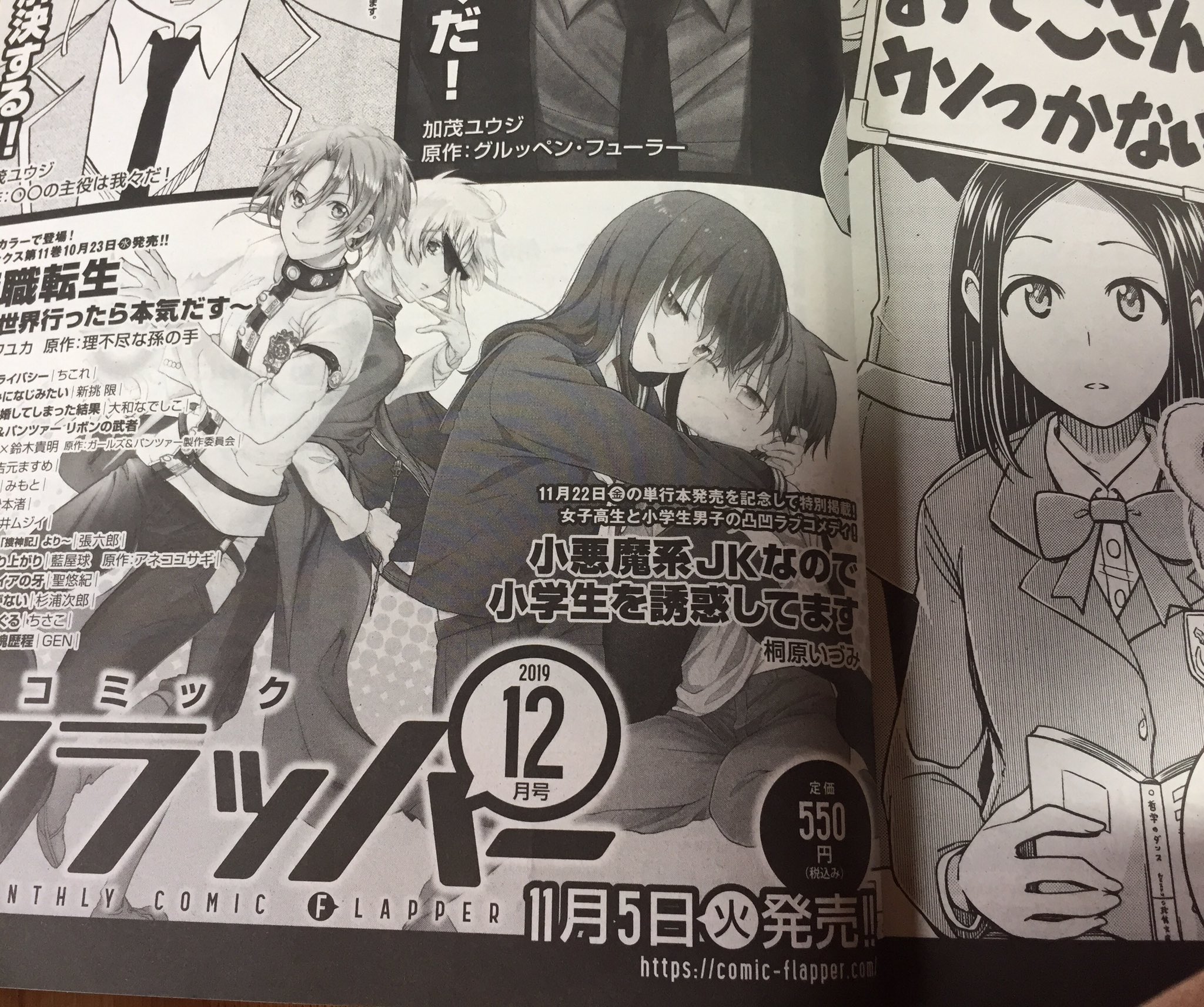桐原いづみ 告知漫画 でも描きましたが 今月発売のフラッパーに予告を入れていただきました ありがとうございます 隣のお姉さんと小学生男子のアレヤコレヤな漫画です 小悪魔系jkなので小学生を誘惑してます
